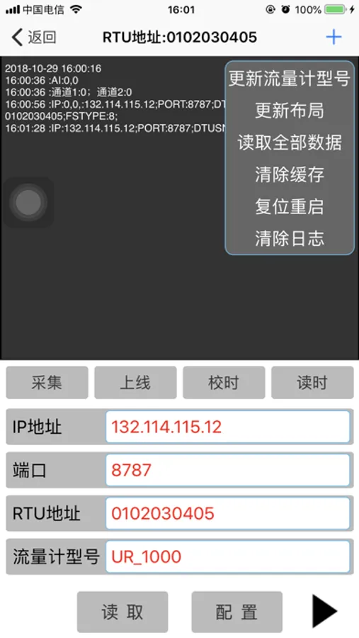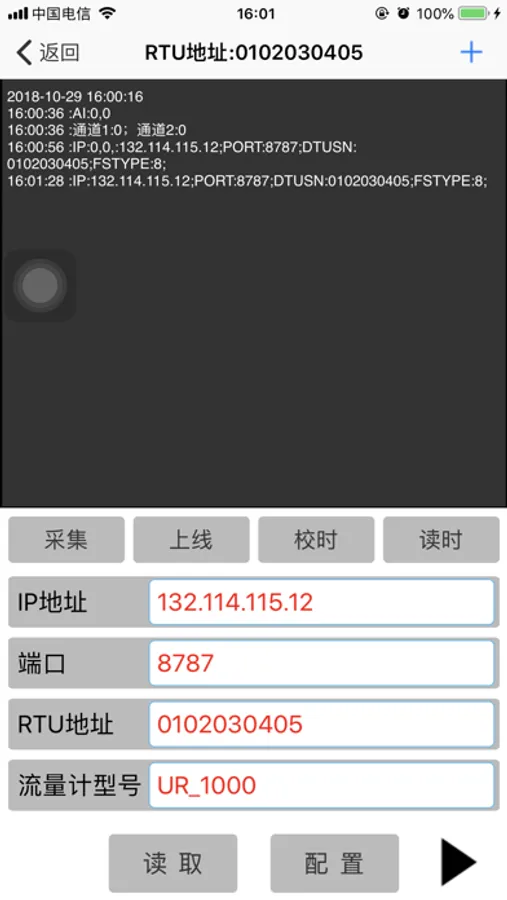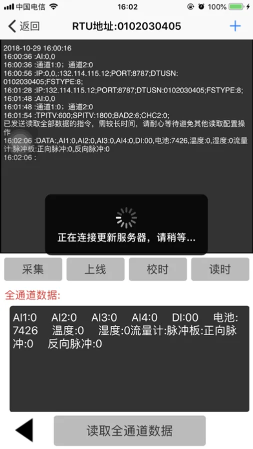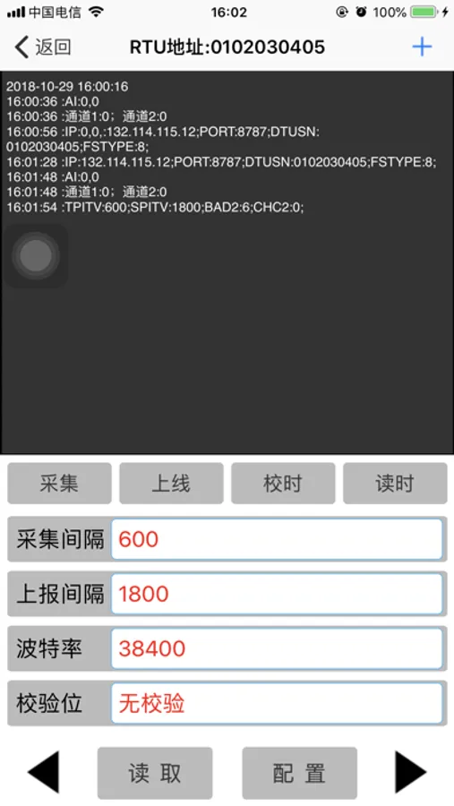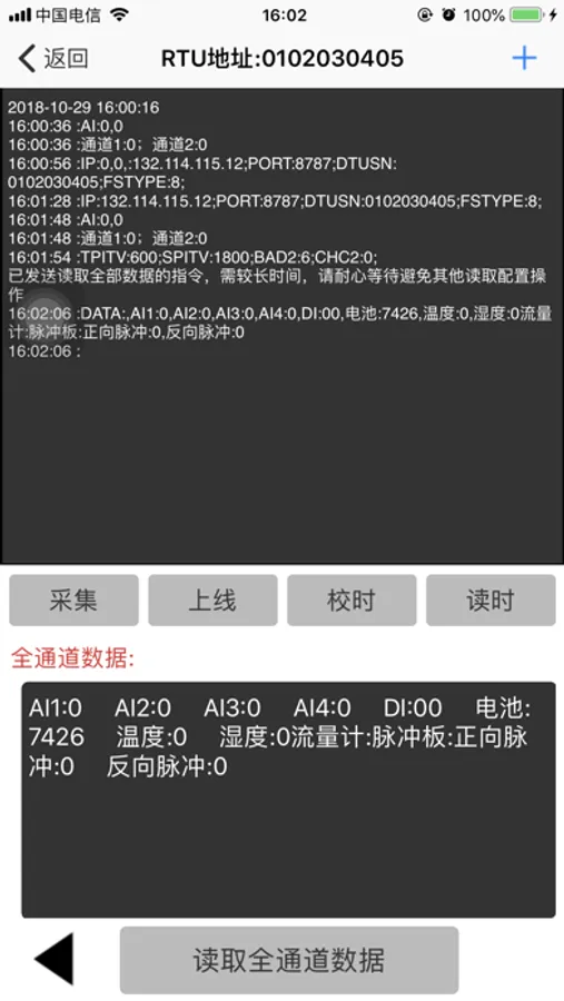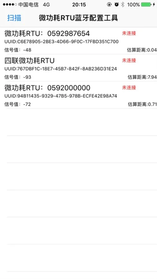 支持我司带蓝牙模块的微功耗测控终端(RTU)产品的参数配置、读取,固件升级,数据采集,时间同步等。