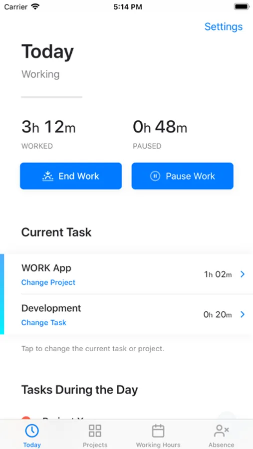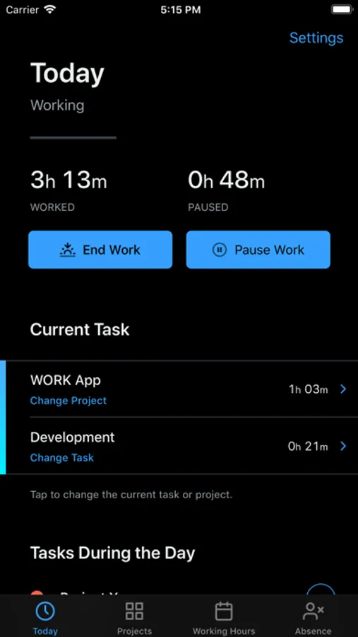 The time tracking takes place with the help of the smart user guidance without occupying much time. As a result, the app can be integrated into the daily work without disturbing it. For example changing the current task happens with 3 or less taps.