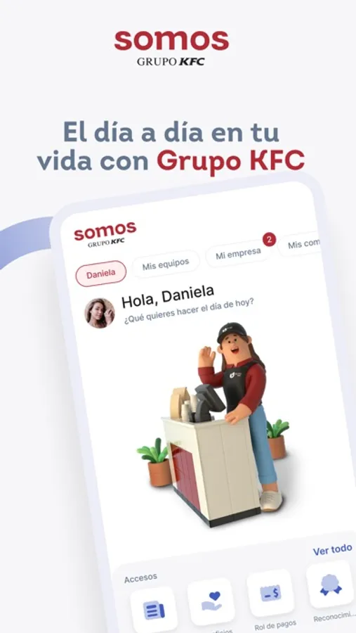 La nueva aplicación del Grupo KFC Ecuador te permite conocer la información mas importante de nuestra empresa en Ecuador, enterarte de comunicados importantes de nuestros lideres y consultar tus datos como colaborador nuestro.