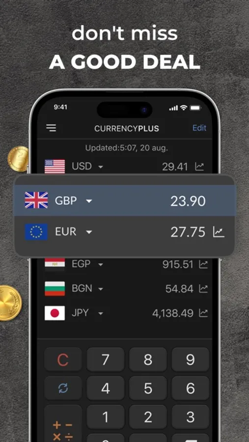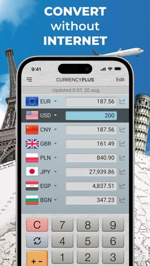 From the makers of Fraction Calculator Plus comes Currency Converter Plus - the easiest, most user-friendly stop for global exchange rates, with AccuRate™! With multiple currency fields, historic rate charts, and a built-in calculator for convenience, compare prices anywhere while traveling abroad to be sure you're getting the best deal at today's rate. All conversions use live exchange rates from AccuRate™, providing the most accurate rates available in the world. Plus, it still works offline for travel when exchange rate data is not available. The app even supports Bitcoin!
