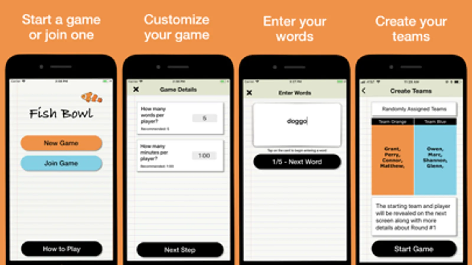 Fish Bowl is a free fun-filled memory game that combines Taboo, Charades, and Password. It is an easy game to learn, which means children and adults can play it together. Fish Bowl can be played with four or more people, which makes it perfect for parties and family get-togethers.