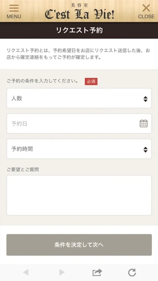 ご希望の日時を指定して送信するだけで予約を依頼できます。