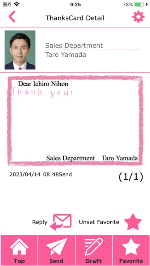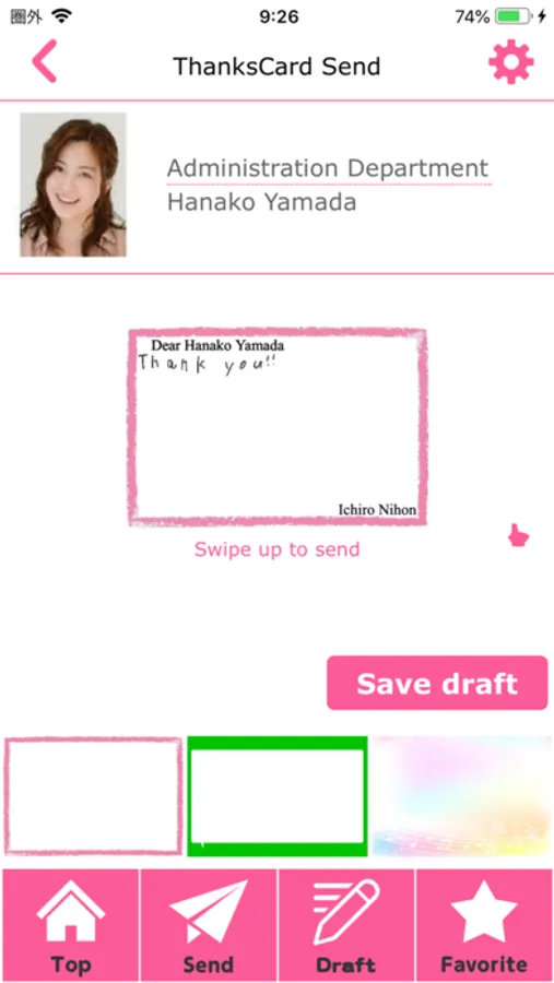 2) The received Thanks card will be sent by push notification or We will inform you by attaching a Thanks card to the email.