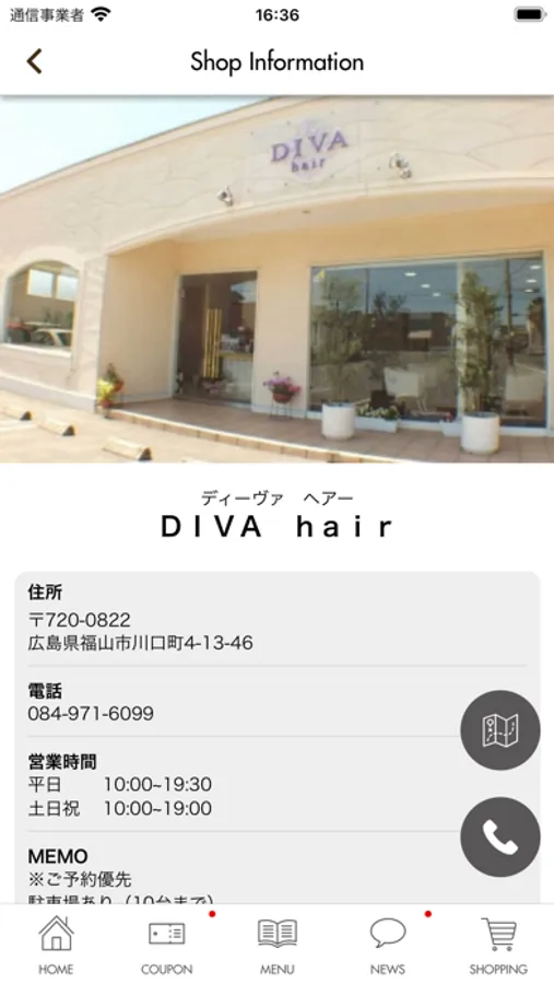 広島県福山市にあるヘアーサロン DIVA(ディーヴァヘアー)公式アプリが登場。