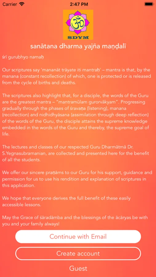 This application is designed to serve as an repository of the lectures and classes of our respected Guru Dharmatma Dr. S.Yegnasubramanian. We are launching it with Bhagavad Geeta and will be adding more in the future.
