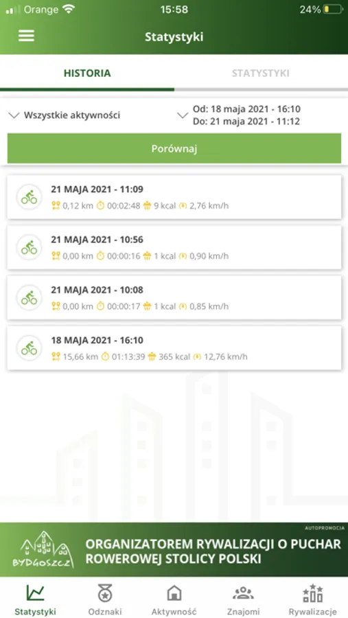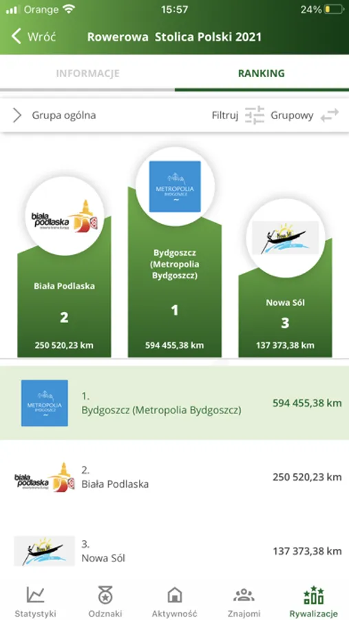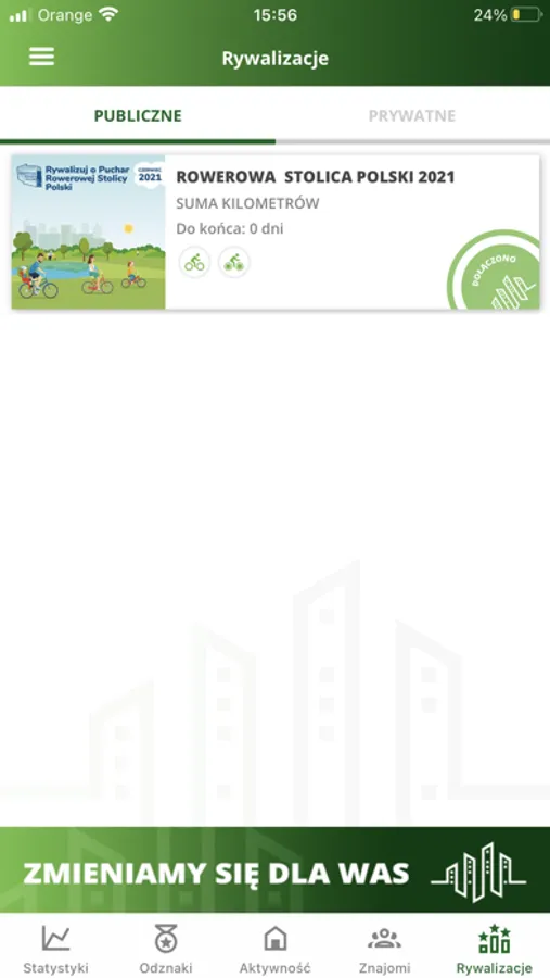Aplikacja jako jedyna w Polsce umożliwia branie udziału w rywalizacjach sportowych, w które angażują się aktywne samorządy. Od 2023 roku do projektu mogą włączać się także gminy. Kluczową rywalizacją z wieloma nagrodami jest Rowerowa Stolica Polski, która odbywa się w czerwcu. W ciągu całego roku nie brakuje także wyzwań i konkursów dla biegaczy, rolkarzy i wielu innych dyscyplin. Zawsze ze sportowymi nagrodami dla najlepszych.