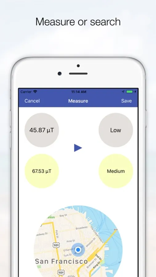 Just start detecting to assess environmental risk or approach your iPhone (the magnetometer is in the upper left) to the area you want to measure and you will see the magnetic field variations indicated by the app.