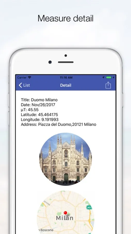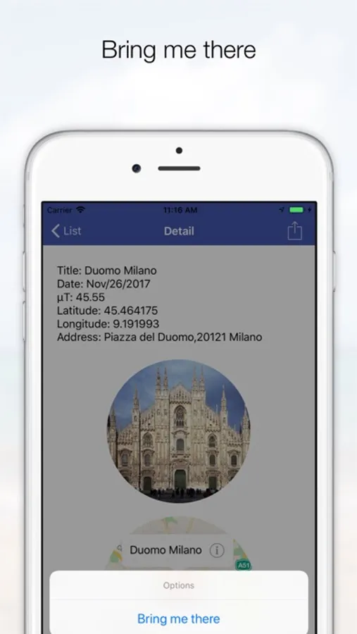 Each survey can be saved in the app, along with location data, an image or a photo, so you know where it is and in detail get directions for the location.