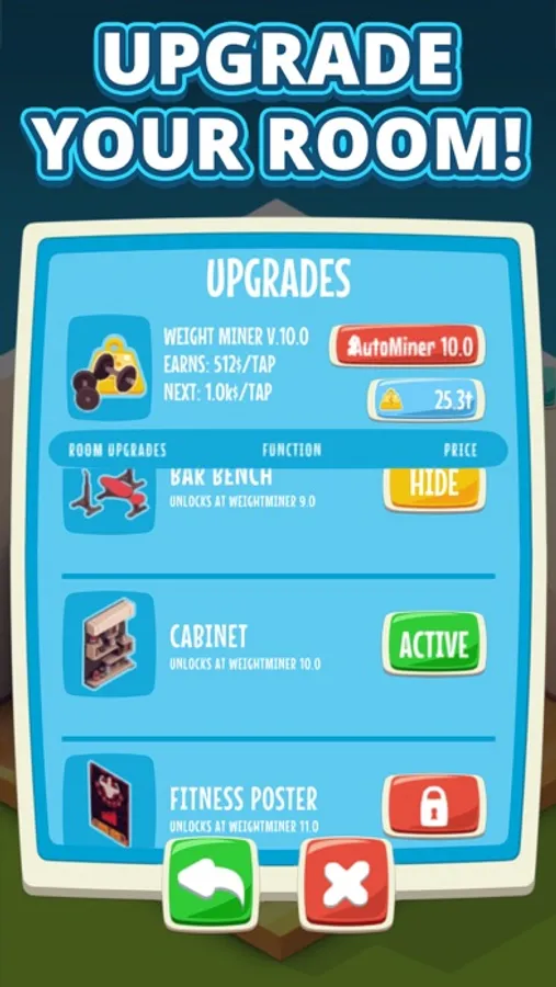 You can also use these points to improve the strength of the tapes thanks to Weight Mainer, to earn even more! And every subsequent improvement of Weight Mainer unlocks a new upgrade to your gym (and it's free!). And when you're tired of taping, why not get help from the power-ups?