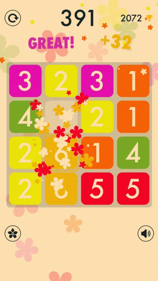 Tap & fuse equal adjacent tiles into one tile with larger value! 7 themes with rich visual effects. Can you make 10?!