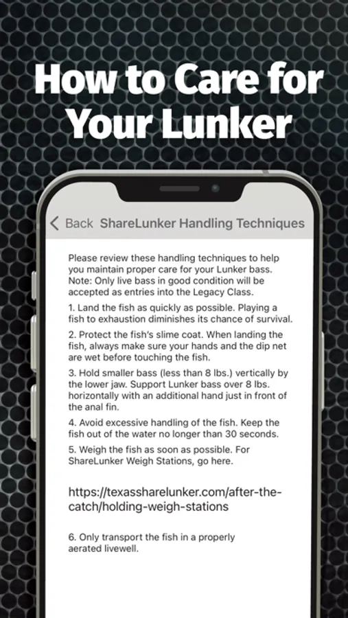 · Find the nearest ShareLunker Station to assist you with weighing, holding, and caring for your Lunker.