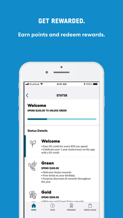 - Access app member-only perks, a free drink on your birthday, and special rewards at Green ($100), Gold ($500), and Blue levels ($1000)
