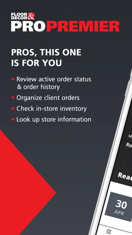 You can manage everything you need for your jobs. With the PRO Premier app from Floor & Decor, you can view your orders, download receipts, check in-store inventory and locate stores.