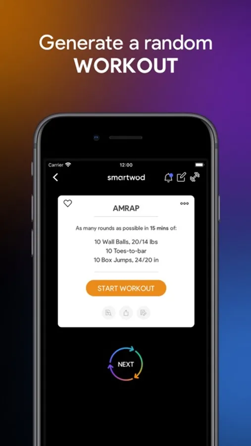 SmartWOD Workout Generator provides you random functional fitness workouts - based on the equipment you have. Simply select the equipment, click on the "GO" button and browse through the workouts. Start the WOD and track your time directly within the app. As simple as that!