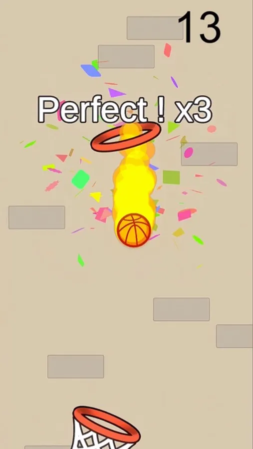 Tap to break the rope and drop the ball into as many hoops as possible.