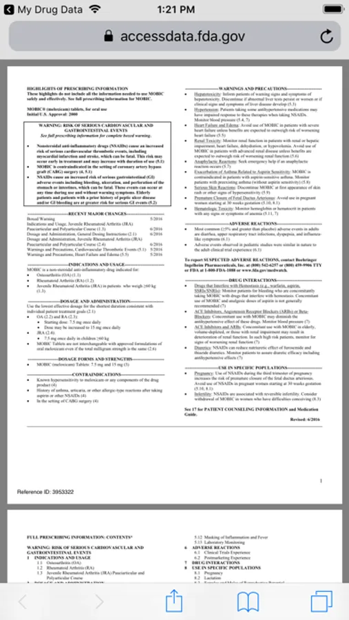 A tap on a drug will produce a popup with information about the drug. If you click on the View Documentation button, in your default PDF viewer you will be able to view detailed and extensive information at the FDA about this drug.