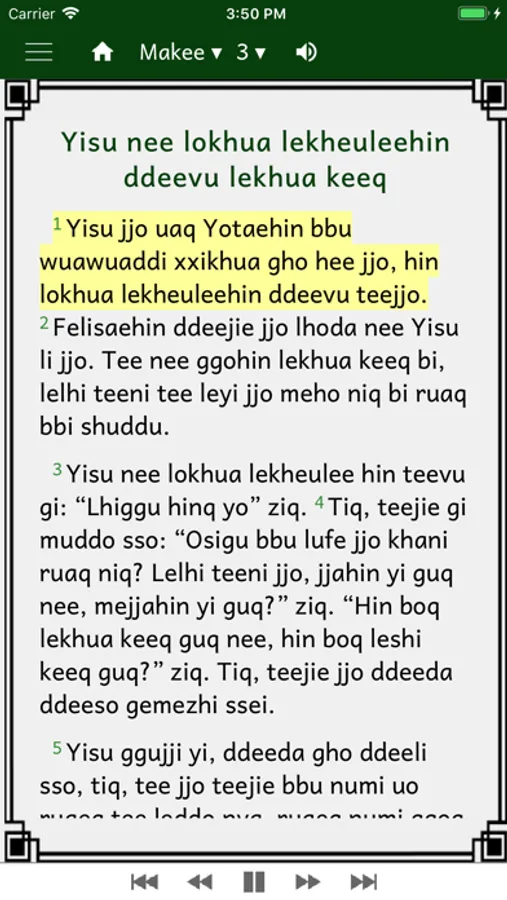 Audio MP3 files downloadable from the internet one chapter at a time and stored on the device.