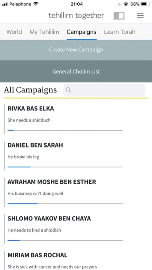 Instantly create and share Tehillim campaigns. Then complete your Tehillim from the stunning Sefer Tehillim included in the app.