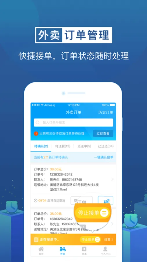注:本应用会开启定位功能,需要在后台持续进行GPS定位,该定位功能用于商家配送外卖时需要获取商家用户的店铺地理位置,这可能会过快消耗您的电量。