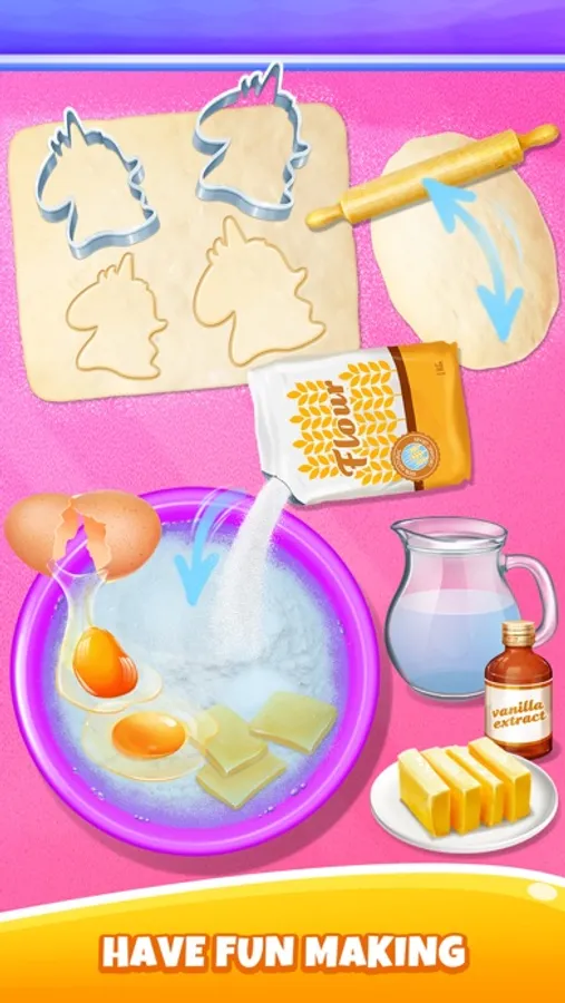 - Make the rainbow cookies and unicorn cookies in a real way with all the ingredients and tools.