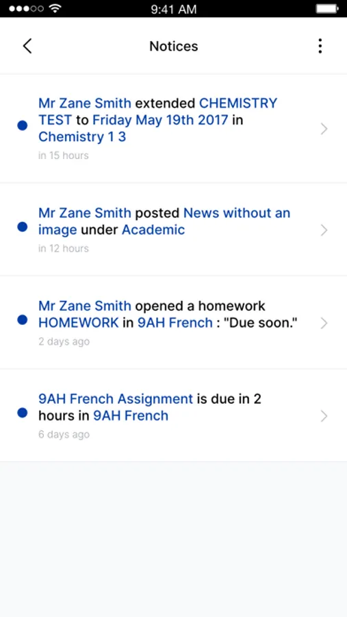 Calendar: the Calendar provides parents, teachers and students a personalised view of what's coming up for the day or in the future. Students can also receive reminders when the due date for their work is approaching