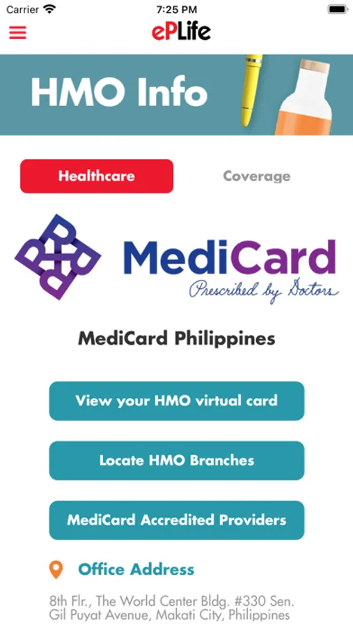 · View HMO coverage, including your virtual MediCard and geolocation for nearby hospitals/clinics