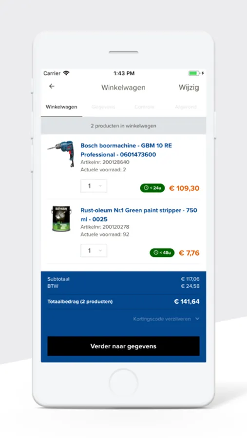 - De App de winkelwagen onthoudt en zo heel de dag gescand kan worden en aan het eind van de dag de order in 1 keer geplaatst kan worden.