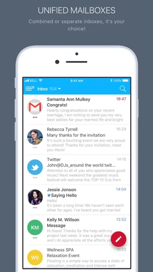 Unified Experience – Combine emails from all of your accounts into a unified mailbox or view each account separately.