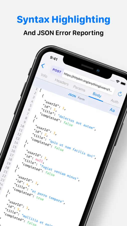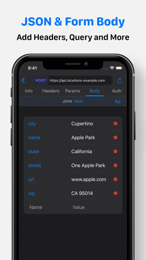 • Split-Screen to see the request and response views simultaneously on iPad and larger iPhones (starting from iPhone X)