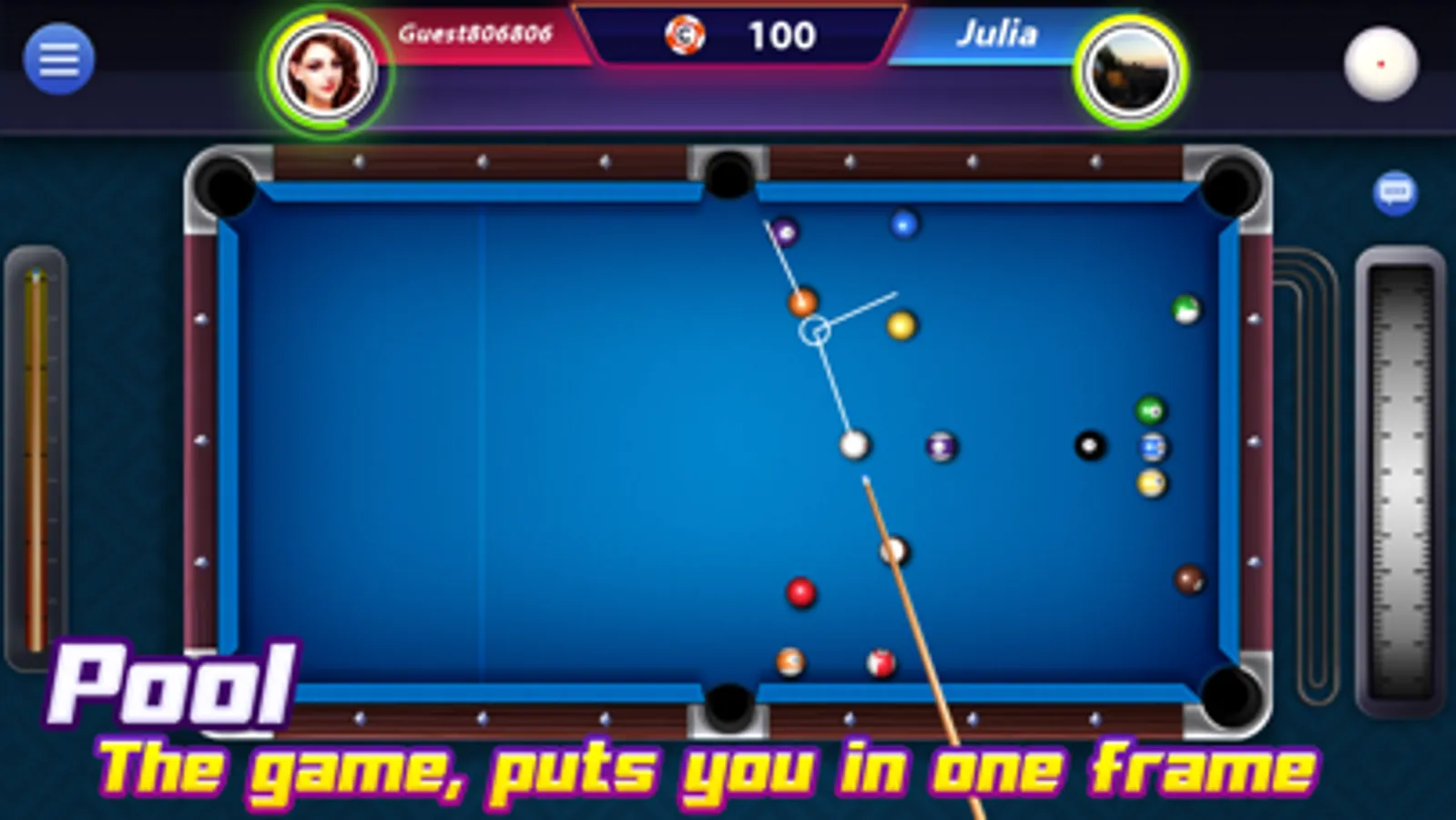 Play pool with other players around the world, against a friend or against a random player in guest mode.
