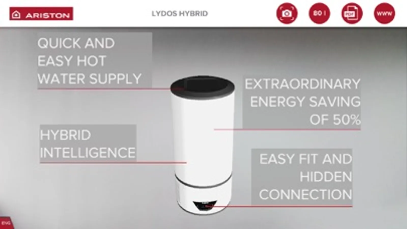 With Lydos Hybrid in augmented reality, you will have the opportunity to have a real image of your electric water heater at any angle without having to purchase and install it. Print and stick the marker at the intended location of Lydos Hybrid and look at it through the screen of your smartphone or tablet. You will then see three-dimensional Lydos Hybrid on the selected background.