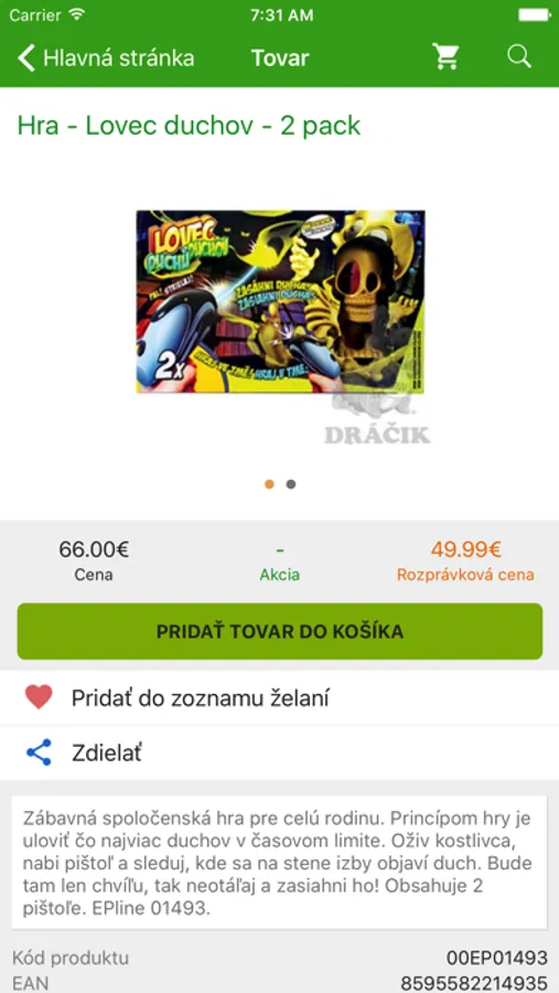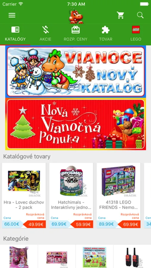 - Prehľad o tovaroch s Rozprávkovou alebo akciovou cenou a obľúbených tovaroch.