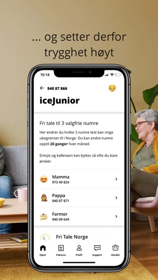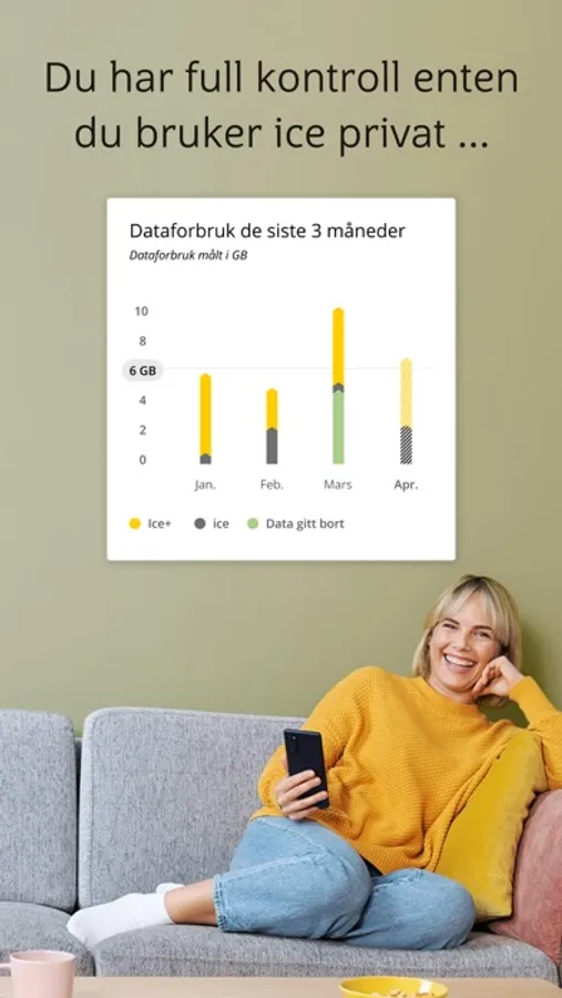 Full fakturakontroll! Her kan du se hvor mye data du har igjen, kjøpe ekstra datapakker, betale fakturaer og dele data med andre ice-venner og familiemedlemmer.