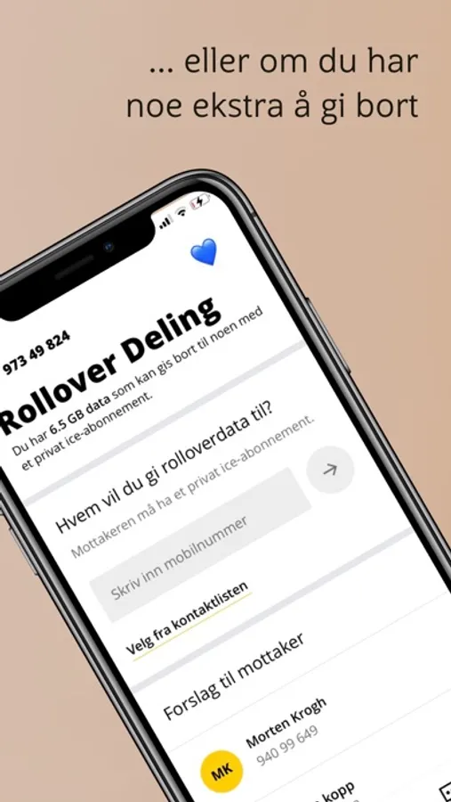 Alle våre ordinære abonnement har Rollover Deling inkludert. I appen kan du enkelt dele rolloverdata med andre ice-venner og familiemedlemmer. I tillegg kan du sjekke om abonnementet ditt kommer med Rollover Deling.
