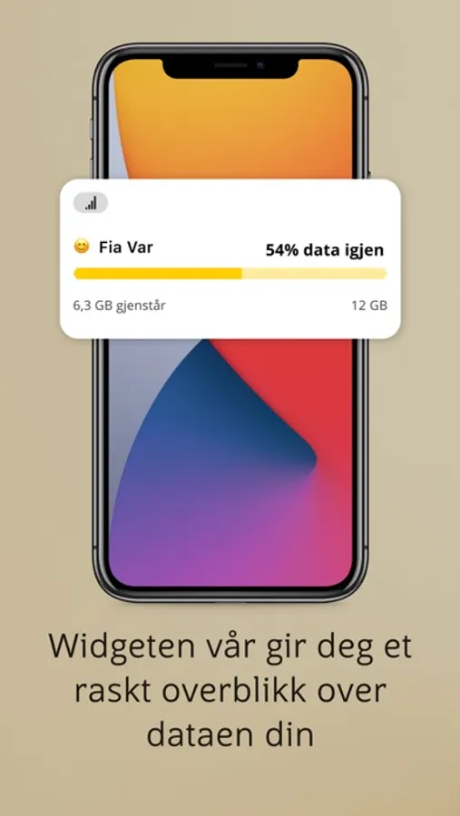 Når du åpner appen finner du informasjon på forsiden hvor mye data du har igjen denne måneden. Du kan også se fakturastatus og eventuelt gjøre opp ubetalte utgifter.
