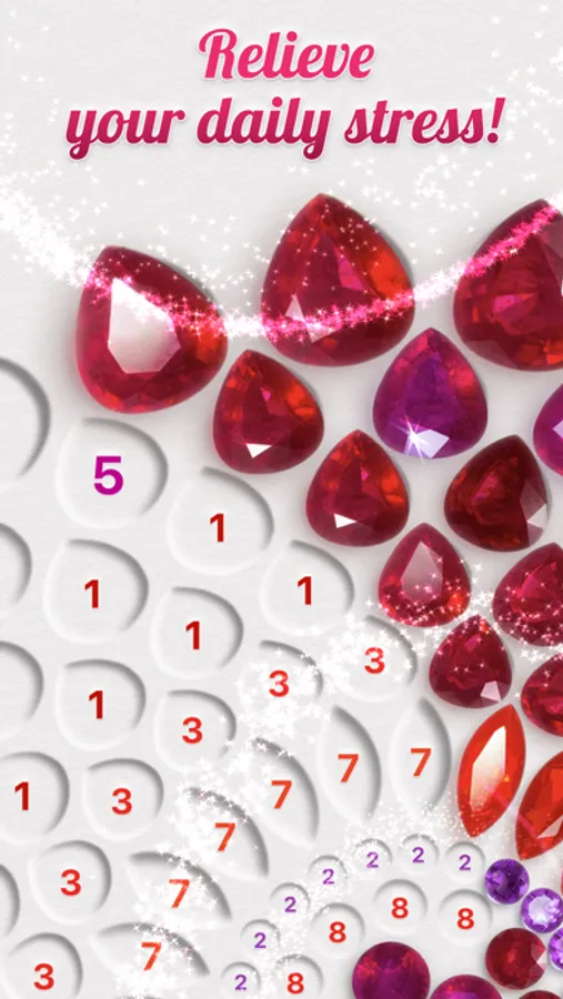 This unique Color by Number app is here to help you relax while creating art that will dazzle you and your friends! Play with beautiful gems and diamonds to sparkle up your day.