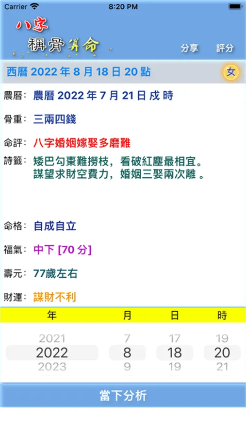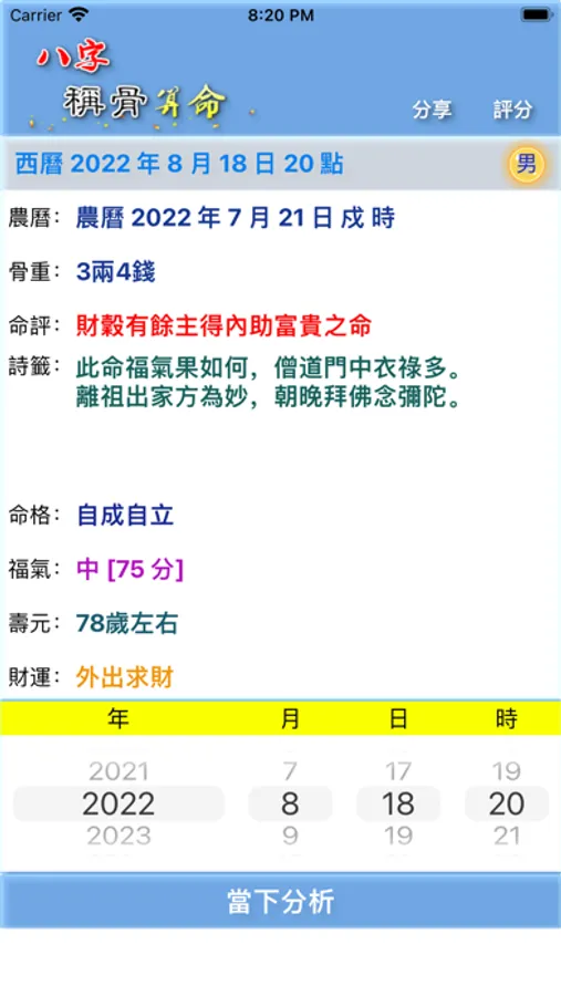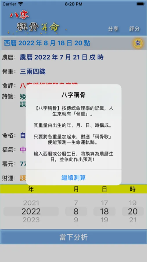 【八字稱骨】按傳統命理學的記載,人生來就有「骨重」。其重量由出生的年、月、日、時構成。只要將各重量加起來,對應「稱骨歌」便能預測一生命運軌跡。