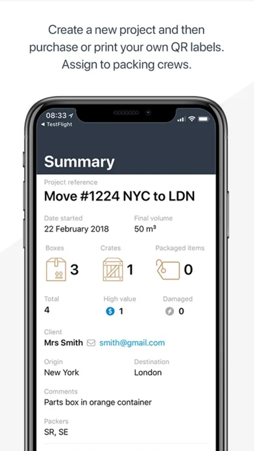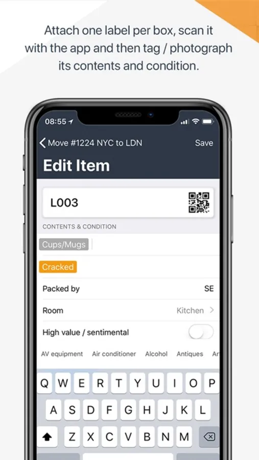 QRbox is the app for individual and professional house movers to track the location and contents of boxes and crates