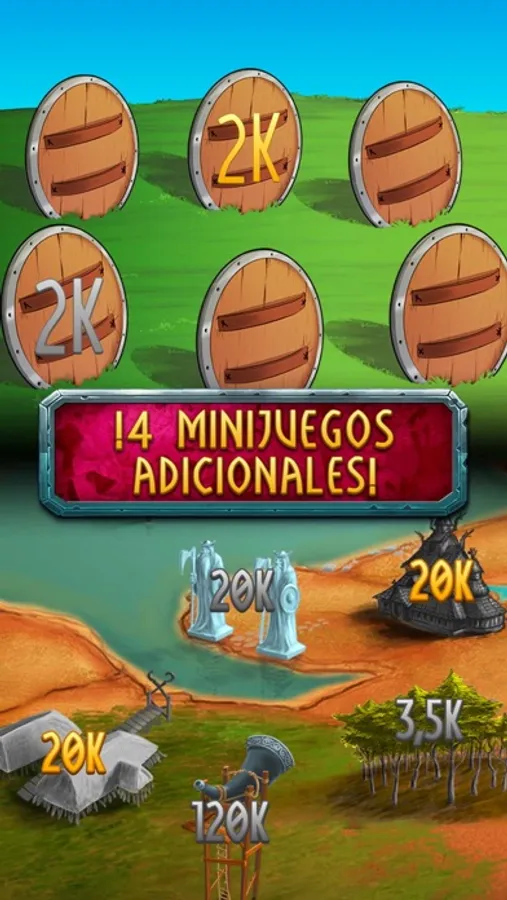 ¿Vikingo, preparado para la batalla en esta divertida tragaperras? Entrena tus habilidades en los 4 minijuegos: