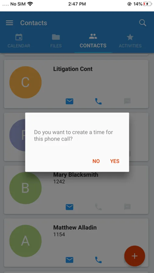 When you create an email, phone call or a text message from within the App, you will be automatically reminded to create a time entry - just like any great assistant.