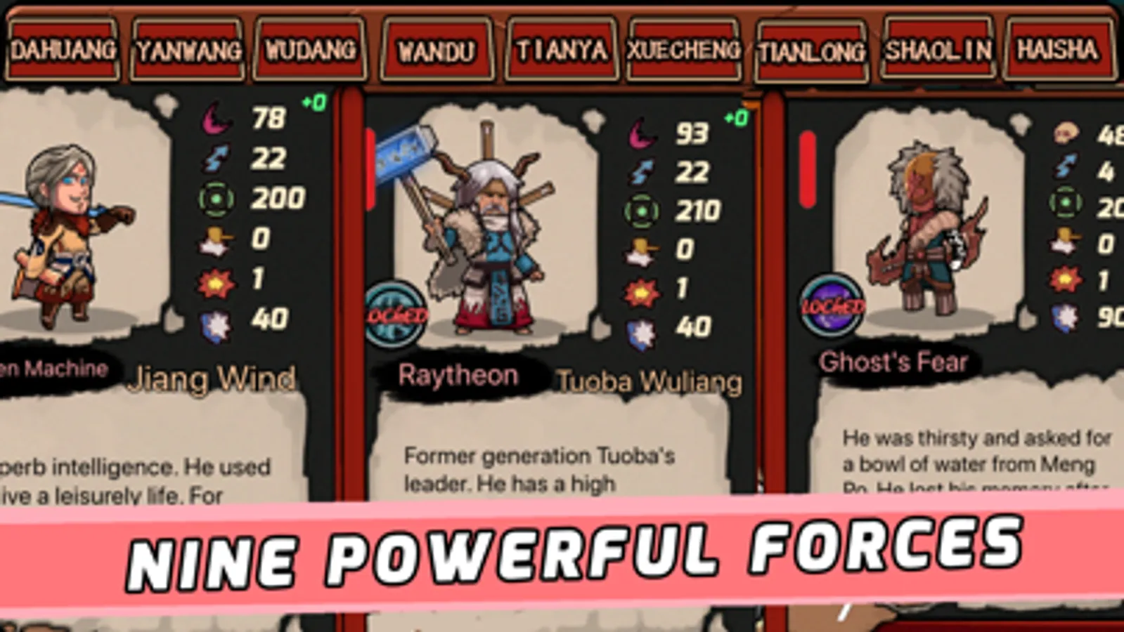 ---- Nine major sects, each with its own unique skills. Combine countless combinations with your heart and challenge the heroic strategic limits.