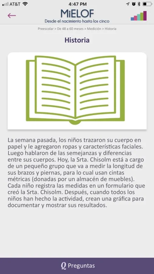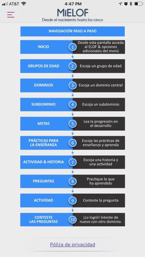 MiELOF es una aplicación (app) móvil para maestros que quieran acceder y aprender más sobre el Marco de Head Start sobre los resultados del aprendizaje temprano de los niños. Este app ofrece acceso en cualquier momento a las metas del Marco y practicas efectivas que apoyan estás metas. El app fue diseñada para el uso de maestros, proveedores de cuidado infantil familiar y visitadores del hogar.