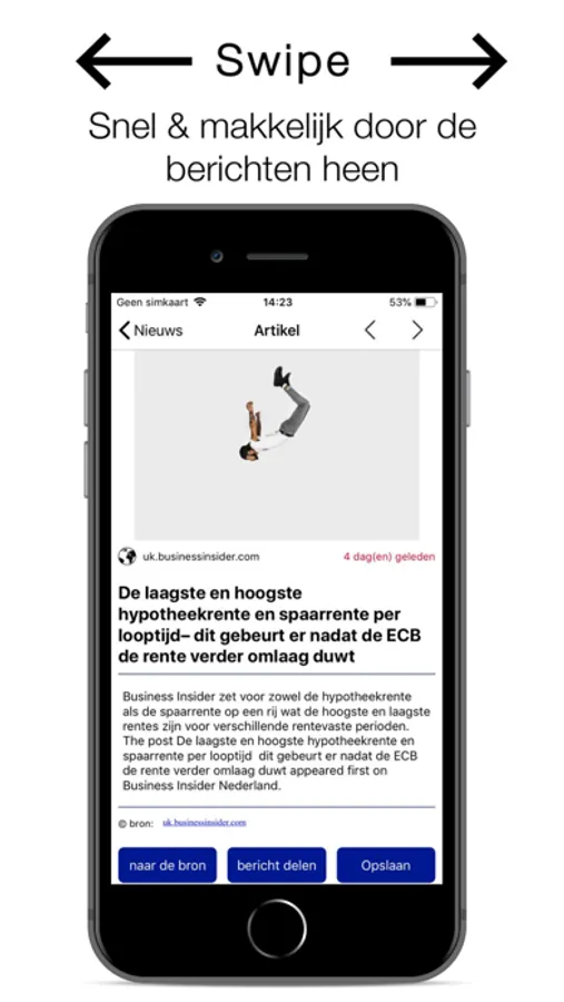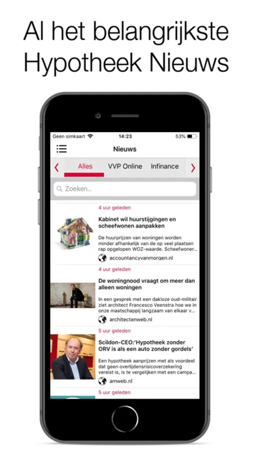 De VVP Nieuws App maakt gebruik van informatie uit alle betrouwbare en toonaangevende media. De chronologische newsfeeds in de app zijn uniek. Niet alleen laten wij de populairste nieuwsberichten zien, maar ook belangrijke social media berichten komen op uw scherm voorbij. Alles in één App! De applicatie is zeer gebruiksvriendelijk en u swipet makkelijk door alle berichten. Als u al het hypotheeknieuws wil volgen, dan is de VVP Nieuws App onmisbaar voor u. Andere features in de App: