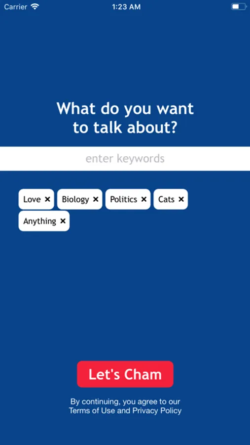 This app will find you someone of same interests to chat with by entering keywords of interest.