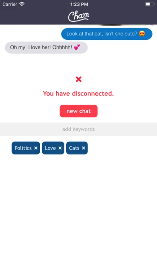 Cham is a one-on-one chat app designed to give you a chance to discover and connect with someone of same interests.