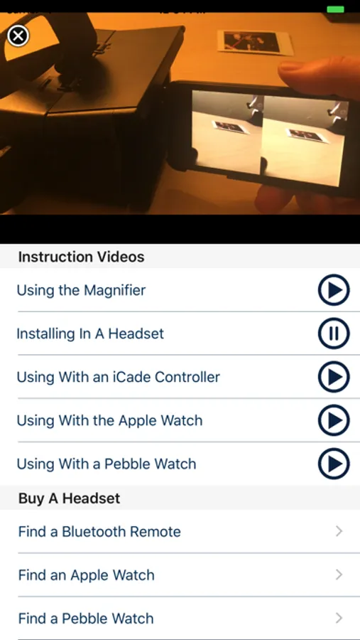 NOTE: To fully experience the features of this app, you will need an AR/VR headset to place your phone or iPod Touch, as well as a Bluetooth remote, Apple Watch, or Pebble Watch to control your headset. The app contains links to all compatible components as well as instructions for using them.