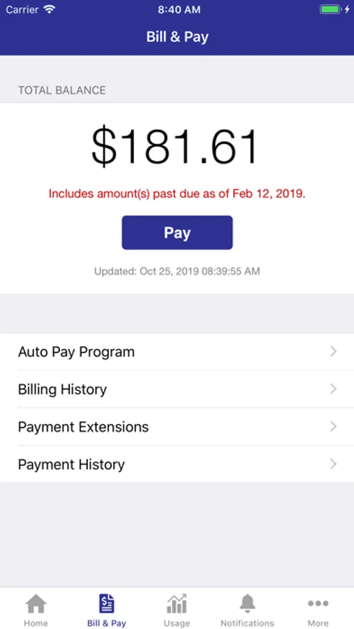 Bill & Pay - Quickly view your current account balance and due date, manage recurring payments and modify payment methods. You can also view bill history including PDF versions of paper bills directly on your mobile device.
