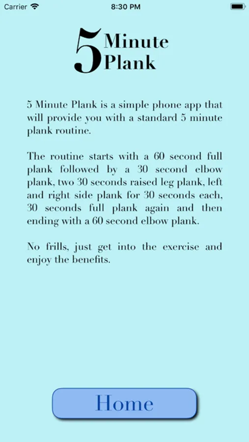 A simple phone app that will provide you with a standard 5-minute plank routine.