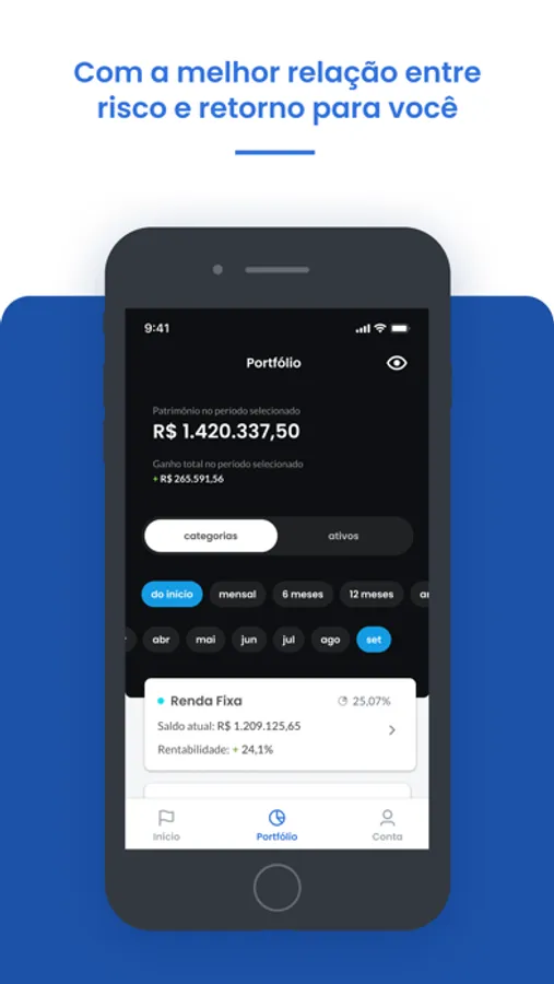 O nosso algoritmo inteligente e nosso instrumental matemático avançado é responsável por personalizar a sua carteira e maximizar seu potencial de rentabilidade dentro do limite de risco estabelecido pelo seu perfil. Monitoramos as carteiras e o mercado constantemente para encontrar as melhores soluções.