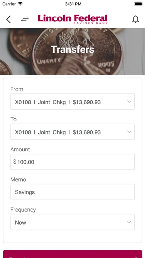 • Transfer Funds: Move money between your accounts.